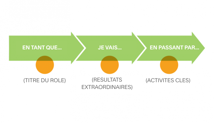 « En tant que (titre du rôle), je vais (résultats exceptionnels) grâce à (activités). »