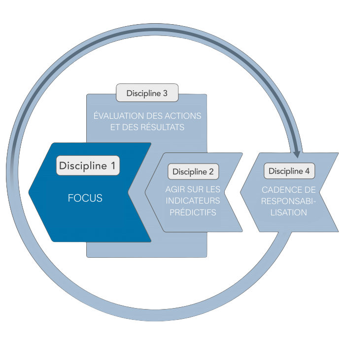 Pratiquer la Discipline 1, c’est réduire votre attention à quelques objectifs très importants afin de pouvoir les atteindre au milieu du tourbillon du travail quotidien.