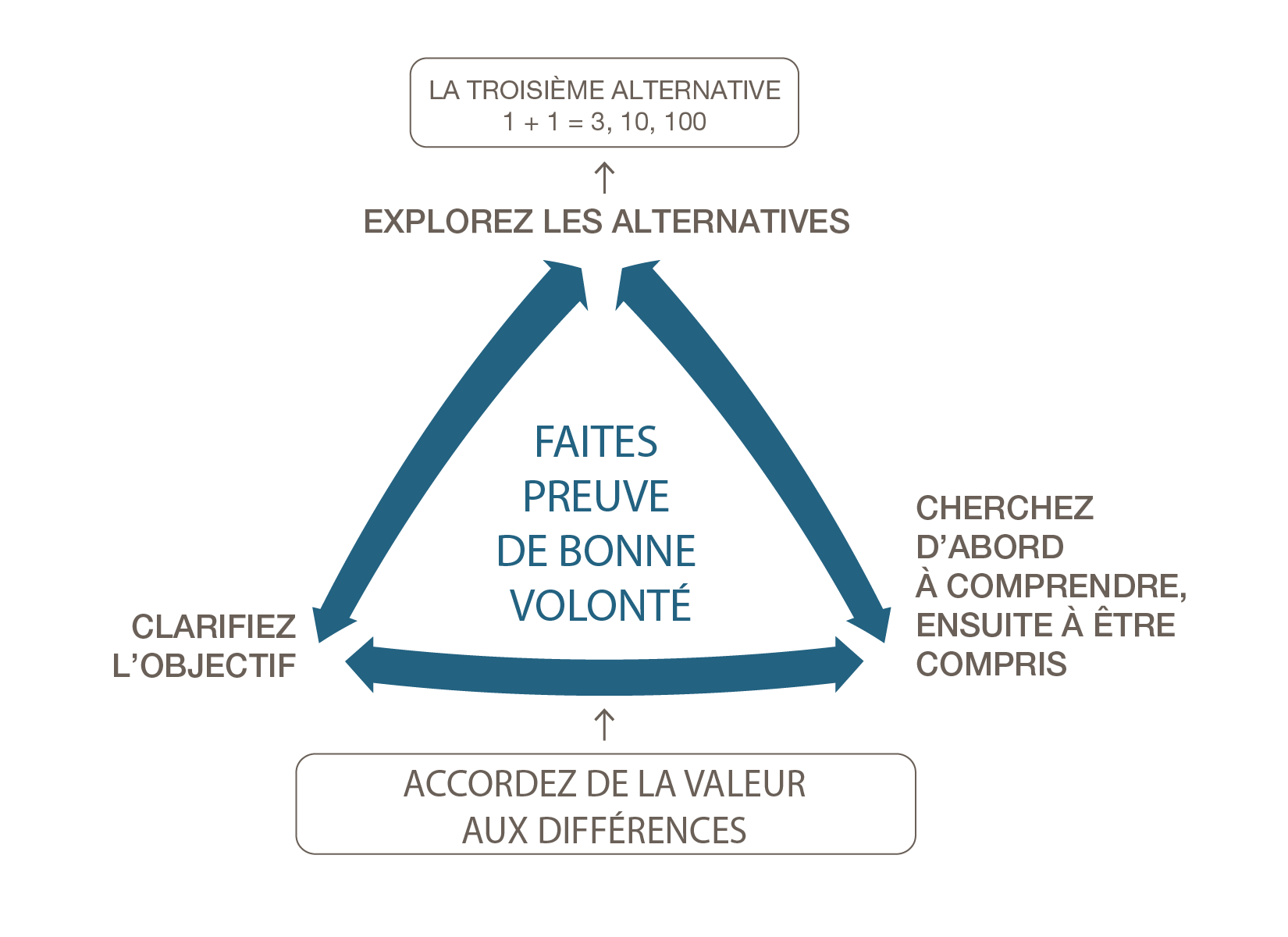 Pour faire simple, la synergie signifie « deux têtes valent mieux qu’une ». La synergie est l’habitude de coopérer de manière créative. C’est le travail d’équipe, l’ouverture d’esprit et un état d’esprit d’aventurier qui consiste à trouver de nouvelles solutions à de vieux problèmes. Mais cela ne se fait pas tout seul. C’est un processus au cours duquel chacun apporte son expérience et son expertise personnelles.